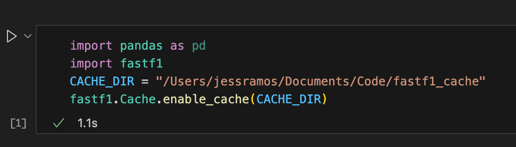 Pip install FastF1, then import it alongside Pandas. The first thing you wanna do is enable caching and point it to a local folder. That way, it saves your data there, so you’re not re-downloading everything every single run.