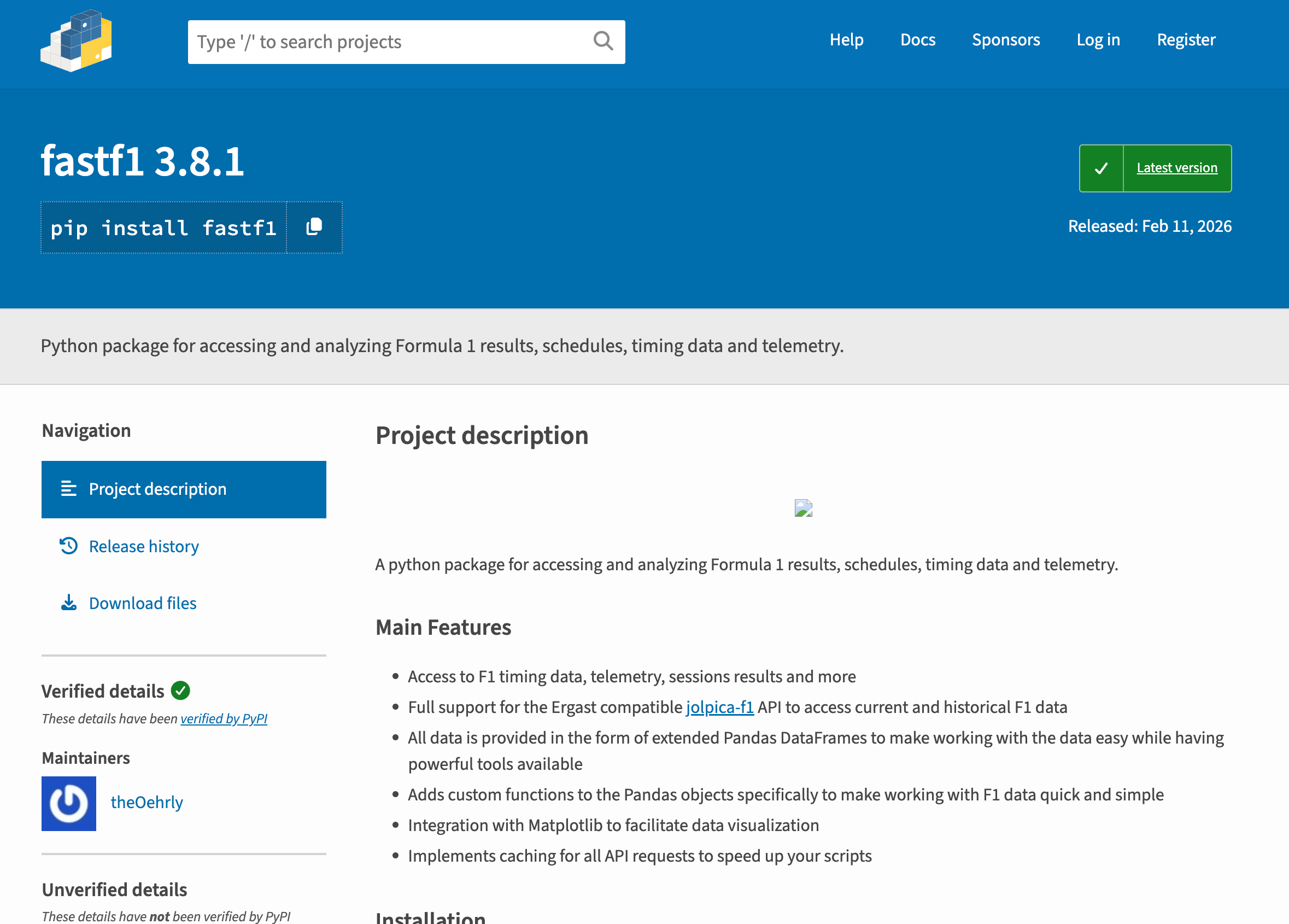 It pulls real F1 data straight from the official F1 timing API, so you get actual race data. Lap times, sector splits, tyre strategy, pit stops, full car telemetry, weather, race results, and all of it come back as Pandas DataFrames, so it fits right into any Python workflow you’re already running. 🏁