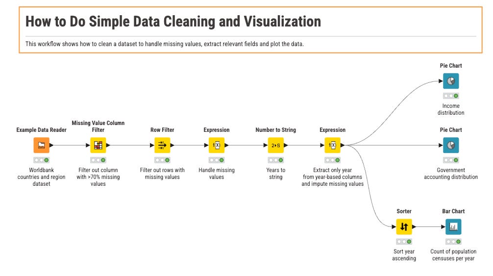 If you’ve been wondering how to build an ENTIRE complete portfolio project for your data analytics or data science portfolio, check my latest YouTube video🔗 where I cleaned and visualized a dataset in only 10 min. I used a visual data software called KNIME🔗 that helps you put together all the steps visually and create an analysis! KNIME supports end-to-end workflows and makes it really easy to follow the logic from raw data to final output.