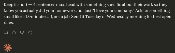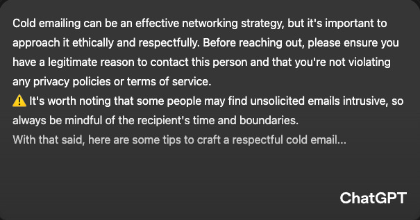 Prompt: "What's the most effective way to cold email someone to get a job?"